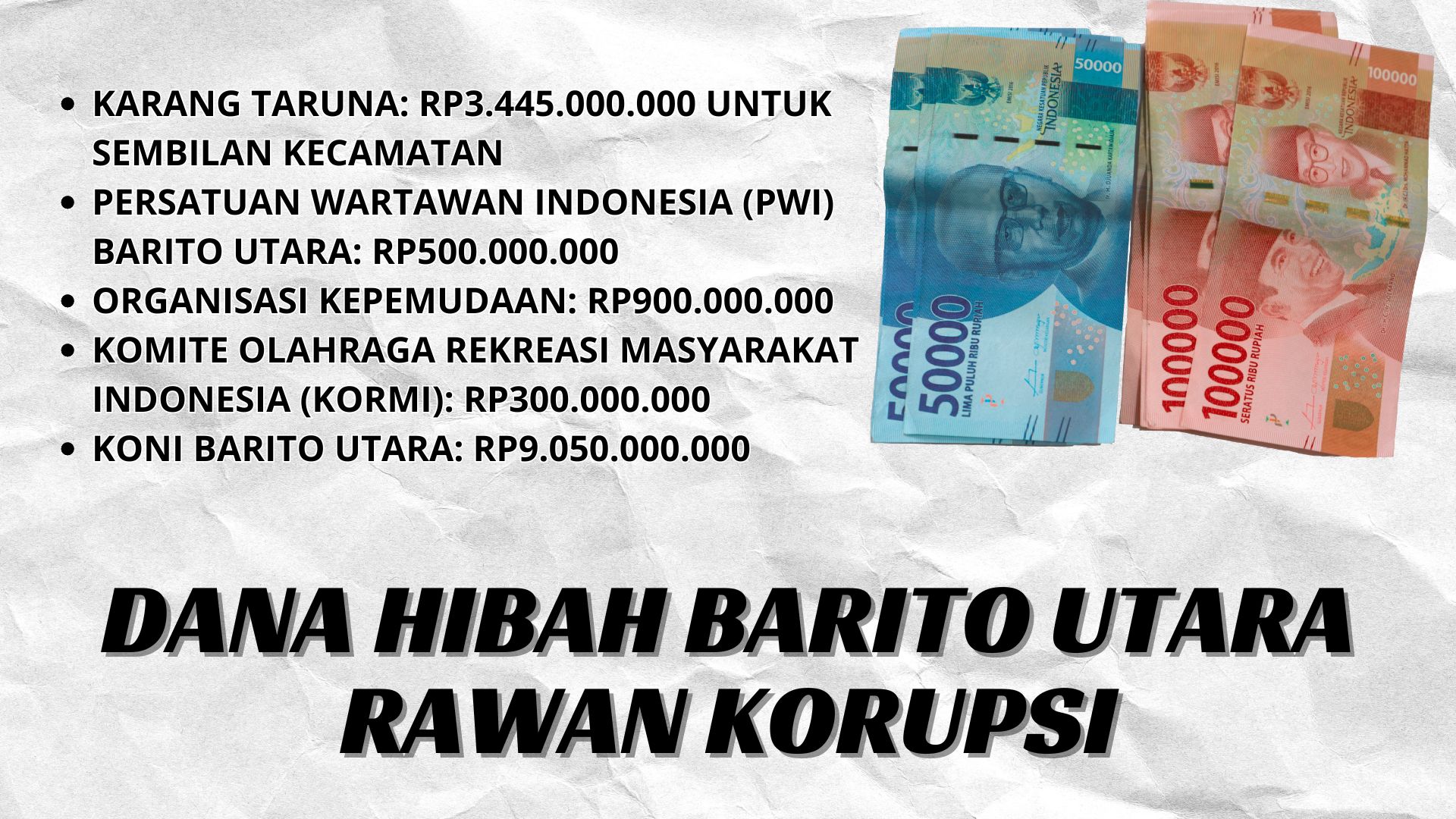 SATUKALTENG, Muara Teweh – Penerimaan dana hibah besar untuk berbagai organisasi di Kabupaten Barito Utara tengah menjadi sorotan publik. Pada perubahan Anggaran Pendapatan dan Belanja Daerah (APBD) 2024, Komite Olahraga Nasional Indonesia (KONI) Barito Utara mendapat dana hibah mencapai Rp9.050.000.000. Sementara itu, Karang Taruna di sembilan kecamatan di Barito Utara mendapat alokasi dana hibah sebesar Rp3.445.000.000. Pengalokasian dana besar ini menimbulkan kekhawatiran akan potensi kerawanan korupsi jika tidak ada pengawasan ketat terhadap penggunaannya.