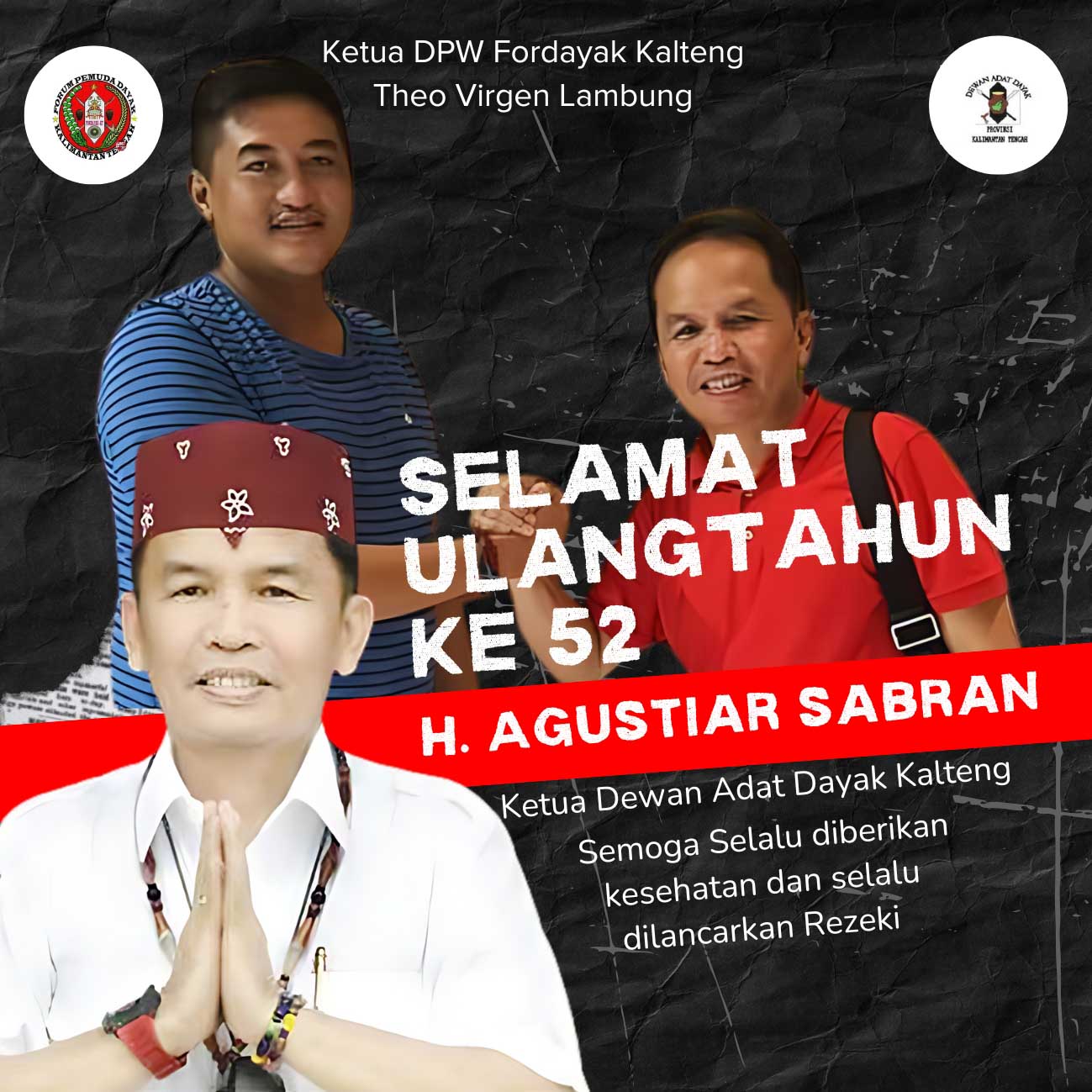 Ketua DPW Fordayak Kalimantan Tengah, Theo Virgen Lambung, menyampaikan langsung ucapan tersebut dengan penuh penghormatan. “Saya mengucapkan selamat ulang tahun ke-52 kepada abangda saya, H. Agustiar Sabran. Semoga karir, rezeki, dan kesehatan selalu dilimpahkan kepada beliau,” ungkap Theo.