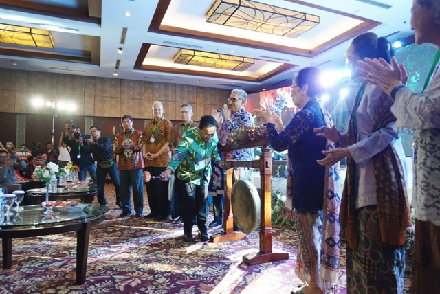 Wakil Gubernur Kalteng H. Edy Pratowo saat membuka secara resmi Kongres Dunia Subud ke-16 ditandai dengan Pemukulan Gong. mmc Kalteng