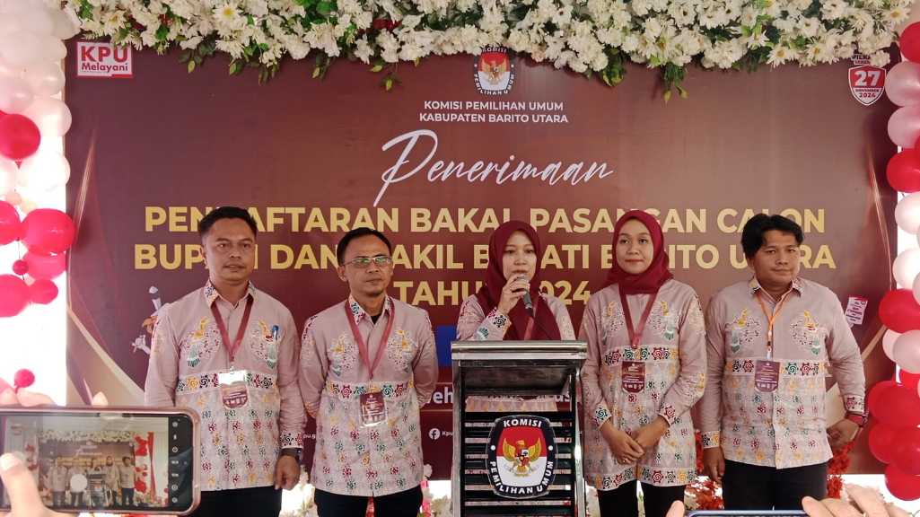 “Pendaftaran pasangan calon Pilkada 2024 ini dibuka mulai 27-29 Agustus 2024,” kata Ketua KPU Barito Utara Siska Dwi Lestari usai menerima pendaftaran pasangan calon Bupati dan Wakil Bupati Barito Utara, Rabu (28/8).